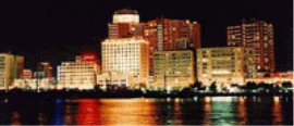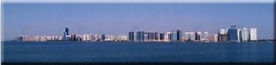 Blick auf die Skyline, vom Wellenbrecher aus photografiert